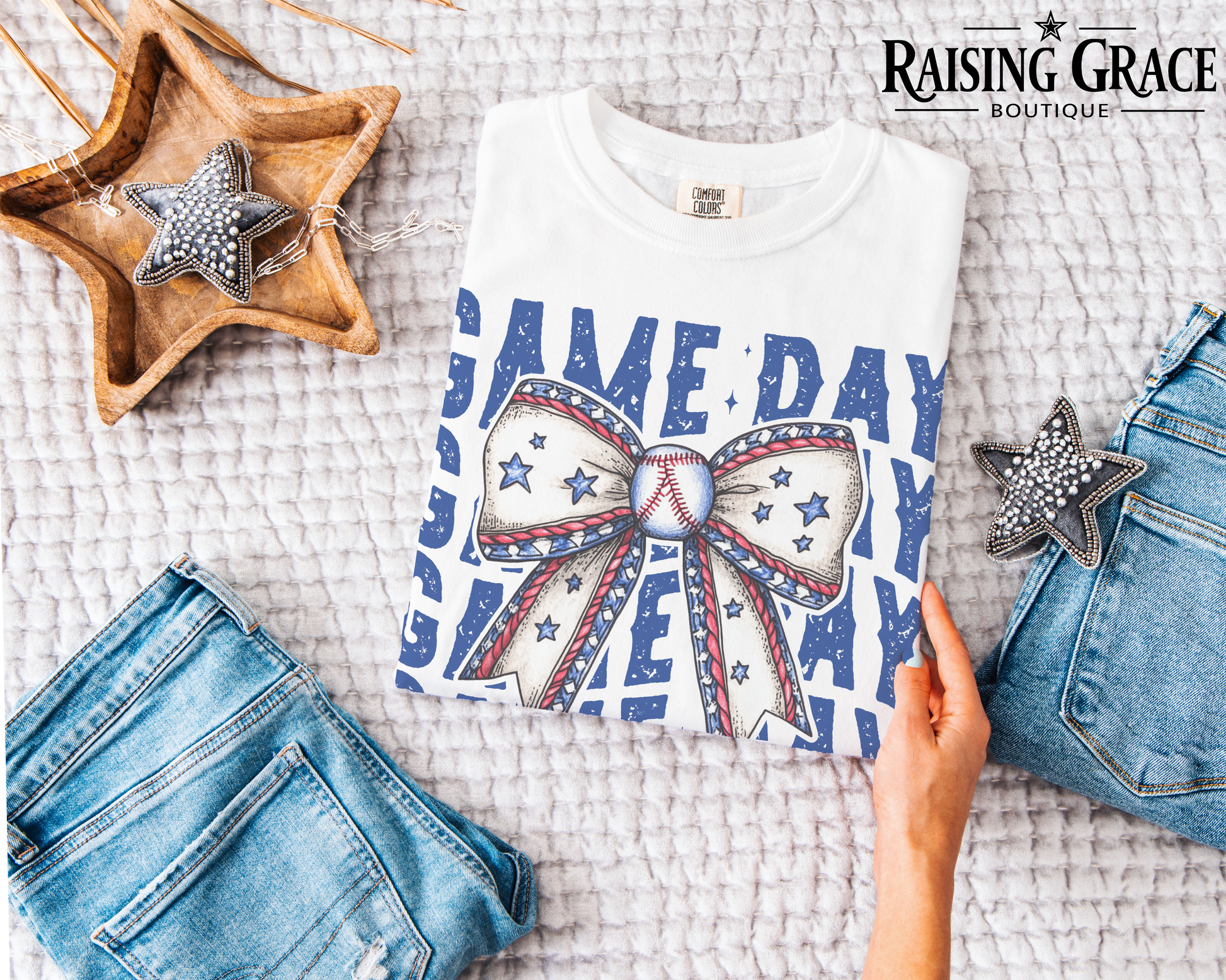 Baseball Gameday with Bow - Adult T-Shirt - Comfort Colors