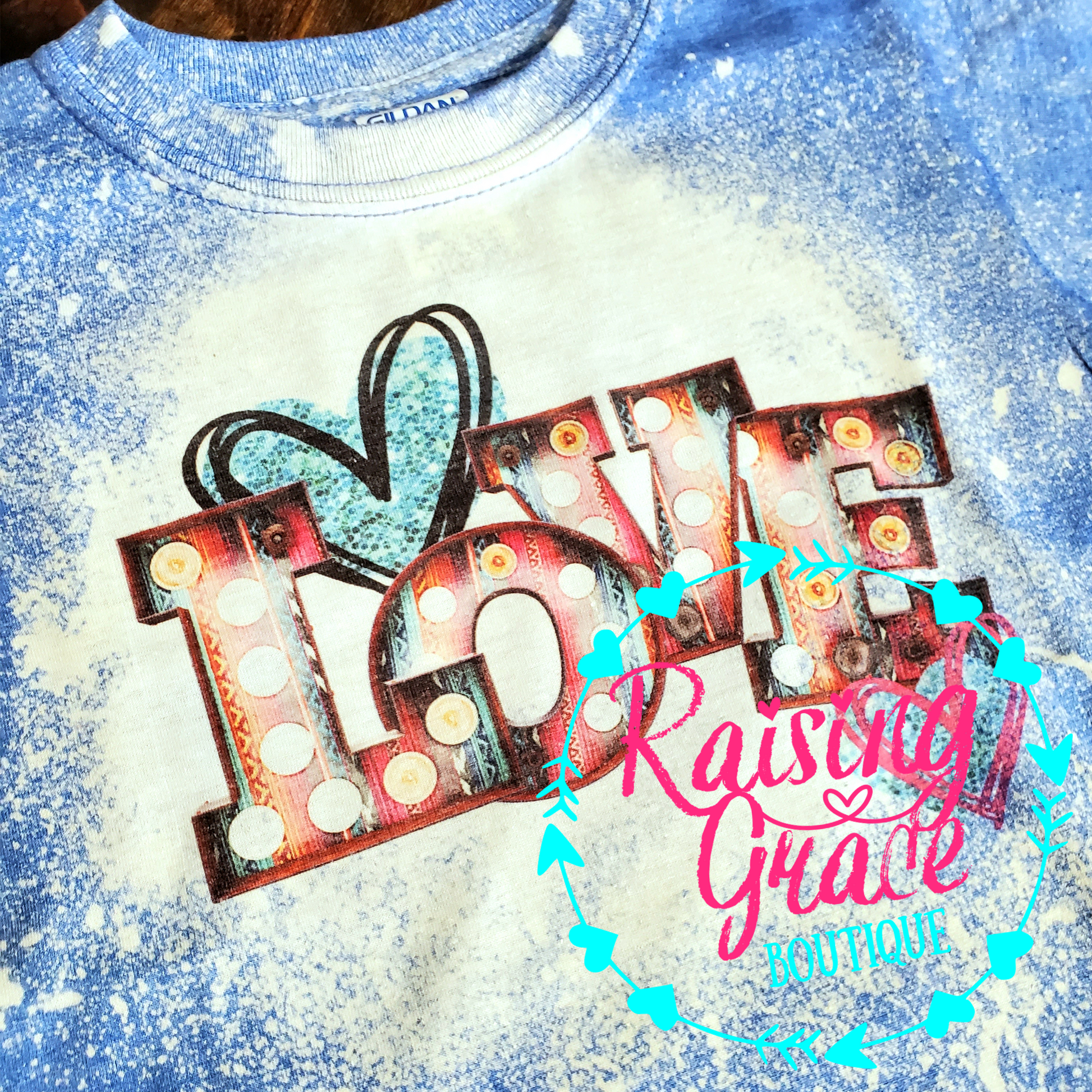 The design is sublimated on a Heather Royal Blue Bleached Tee.