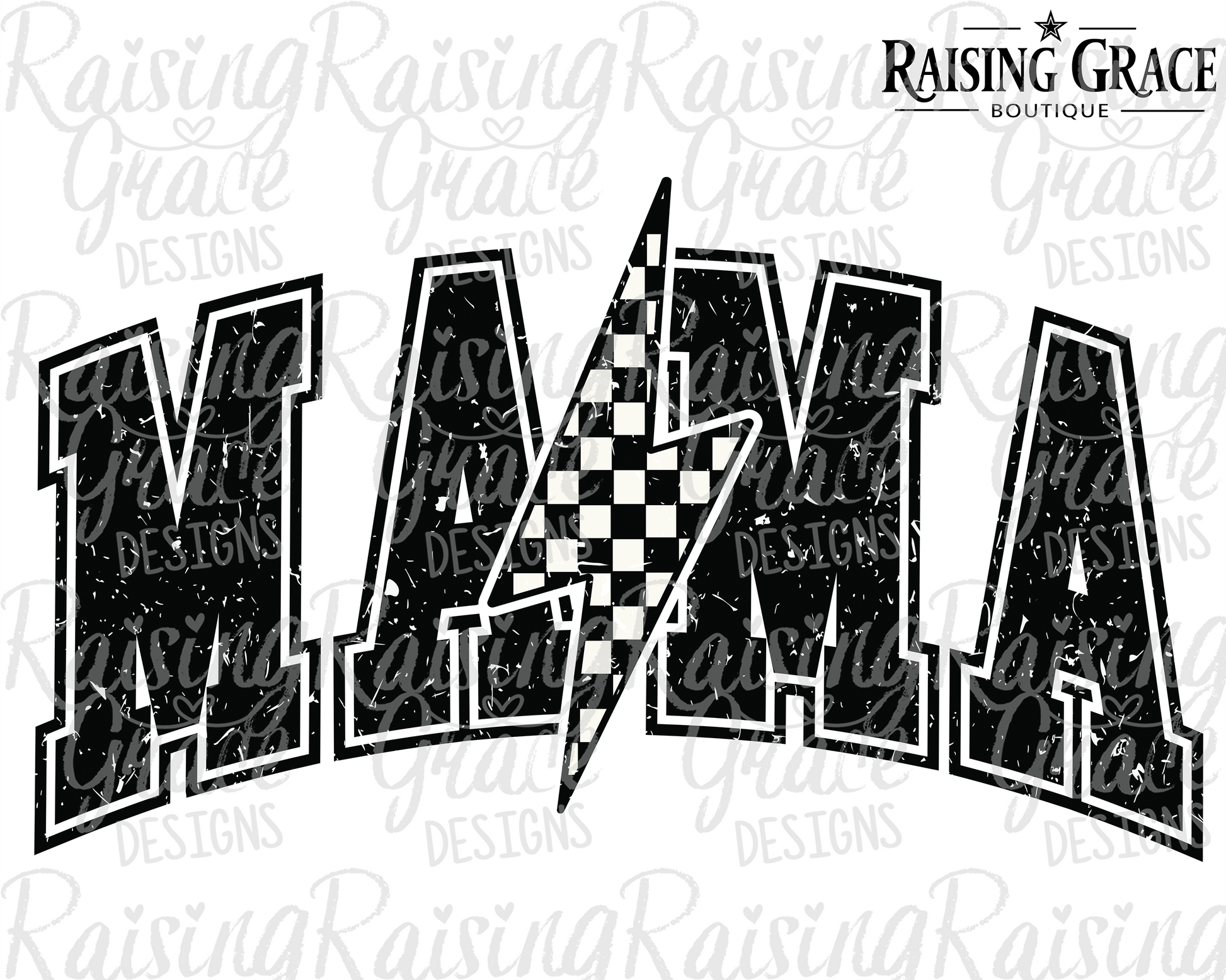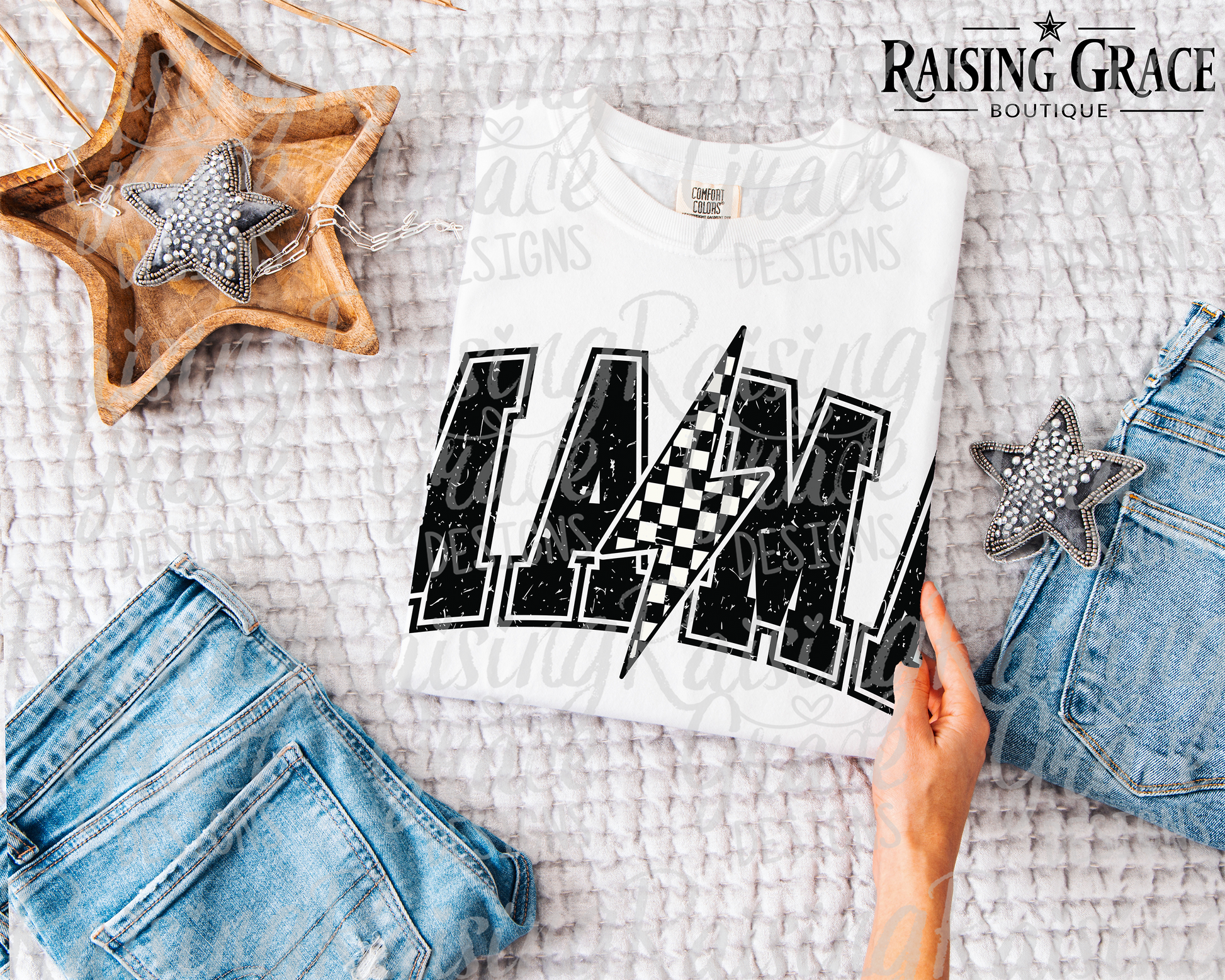 MAMA - With Checkered Lightning Bolt - Adult T-Shirt - Comfort Colors