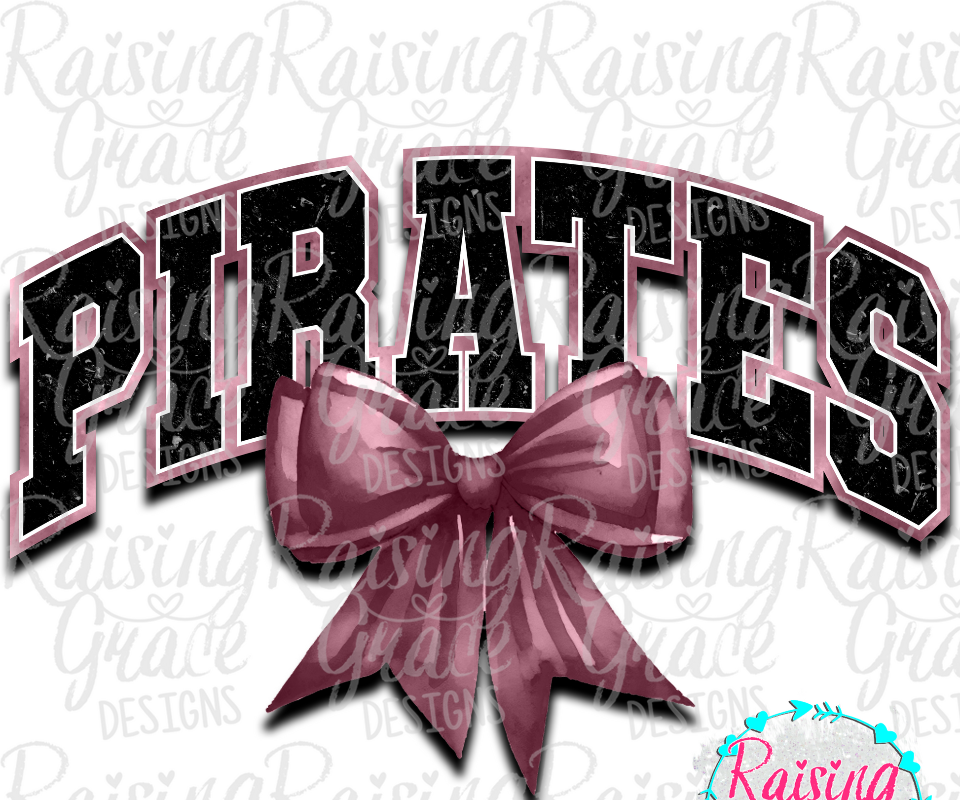 Pirates - with Maroon Coquette Bow - Adult T-Shirt - Comfort Colors